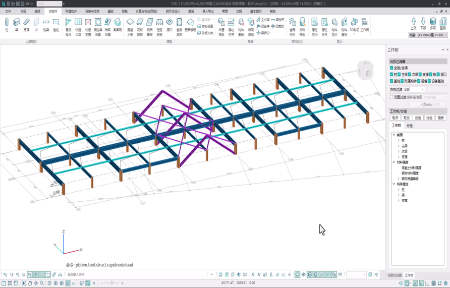 目录 搜索 展开 更新说明20251230版本更新说明更新概要1.协同模块更新点1.1通用机制1.2识图表收资⭐1.2.1操作流程介绍1.2.2功能特点1.3数据收资1.4接口1.4.1工艺协同类软件接口1.4.2计算类软件接口2.上部建模模块更新点2.1通用建模2.1.1工作树⭐2.1.2布置修改2.1.3高分屏适配⭐2.1.4楼板优化2.2快速建模⭐2.2.2快速布置水平撑2.2.1快速悬臂构件2.2.3快速洞边梁2.3智能建模2.3.1设备支架自动布梁2.4附属建模2.4.1直梯栏杆适配参数库模式2.4.2栏杆打断交互⭐3.计算模块更新点3.1荷载导荷3.2振动计算⭐3.3工况优化4.出图模块更新点4.1优化功能4.2新增海外出图模式5.基础模块更新点5.1基础模块更新点⭐5.2设备基础模块更新点5.2.1支持SH/T 3030-2025 石油化工塔型设备基础设计规范⭐5.2.2球形储罐设备及设备基础建模5.2.3支持卧式三支墩建模及计算5.2.4其他更新点1.总体介绍1.1基本功能介绍1.1.1 协同1.1.2 建模1.1.3 计算1.1.4 节点设计1.1.5 出图1.1.6 算量1.2软件界面1.2.1 菜单栏1.2.2 图形空间1.2.3 项目树1.2.4 快捷命令2.轴网2.1导入模型2.1.1导入PMCAD2.1.2增量导入PMcad2.2轴网标高2.2.1轴网标高2.2.2轴网编辑2.2.3标高编辑2.3工作面2.3.1创建工作面2.3.2工作面管理器2.3.3退出工作面2.3.4工作面的快捷按钮2.4修改工具2.4.1移动2.4.2复制2.4.3旋转2.4.4镜像2.4.5阵列2.4.6删除2.4.7拉伸2.4.8延伸2.4.9起坡2.5测量工具2.5.1测量长度2.5.2测量角度2.5.3测量面积2.5.4测量标高2.5.5测量坐标3.主构件3.1上部构件3.1.1柱3.1.2梁3.1.3支撑3.1.4快速次梁3.1.5快速支撑3.1.6拾取布置3.1.7截面刷3.2楼板3.2.1混凝土板3.2.2花纹钢板3.2.3钢格栅板3.2.4压型钢板3.2.5洞口3.2.6全房间洞3.2.7楼板设置3.2.8改板方向3.3修改3.3.1偏心对齐3.3.2构件删除3.3.3标高复制3.3.4主次梁3.3.5梁合并3.3.6梁拆分3.4基础构件3.4.1桩基3.5材料定义3.5.1全局材料3.5.2材料修改3.6显示3.6.1截面显示3.6.2构件显示3.6.3构件查找3.6.43D剖切3.6.5退出剖切4.附属构件4.1楼梯栏杆4.1.1钢直梯4.1.2钢斜梯4.1.3栏杆4.2附加构件4.2.1预埋件4.2.2地脚螺栓4.2.3翻边4.2.4钢平台4.2.5钢通道4.2.6支墩4.2.7支架4.2.8支吊架4.2.9T型支架4.2.10板式支架5.设备基础5.1收资5.1.1设备条件5.2地质资料5.2.1地质资料5.3总参5.3.1统一规定5.3.2自动生成基础规则5.4设备基础5.4.1卧式冷换设备基础5.4.2卧式容器基础5.4.3塔型设备基础5.4.4立式容器基础5.4.6管墩基础5.5设备支架5.5.1立式设备支架5.5.2卧式设备支架5.6汇总表5.6.1设备基础汇总表5.7计算6.协同6.1设备条件6.2工艺提资6.2.1荷载收资6.2.2洞口收资6.2.3埋件收资6.3智能生成6.3.1自动布梁6.4专业协同6.4.1发布设置6.4.2发布版本6.4.3参照6.5链接模型6.5.1链接P3D6.5.2链接管理7.荷载7.1荷载设置7.1.1工况管理7.1.2导荷方式7.1.3荷载显示7.2荷载布置7.2.1梁荷载7.2.2柱荷载7.2.3板均布荷载7.2.4板局部荷载7.2.5节点荷载7.3荷载快速布置7.3.1快速布置点荷载7.3.2快速布置线荷载7.3.3快速布置面荷载7.4荷载编辑7.4.1荷载修改7.4.2荷载删除7.4.3荷载清理7.4.4拾取布置7.5约束指定7.5.1支座约束7.5.2杆端约束7.5.3支座约束删除8.计算分析8.1设计层8.1.1模型检查8.1.2划分设计层8.2计算8.2.1生成分析模型8.2.2计算参数8.2.3计算8.3结果8.3.1数检定位8.3.2结果查看9.钢节点设计9.1导入结果9.1.1读取计算9.2设计方式9.3规格化节点设计9.3.1通用参数9.3.2节点配置9.3.3节点生成9.4按内力生成节点9.4.1节点参数9.4.2节点生成9.4.3节点归并9.5修改节点9.5.1节点修改9.5.2节点表修改9.6节点查询9.6.1节点设计结果9.6.2节点计算书9.6.3编号显示9.7内力查看9.8清除数据10.图纸10.1参数10.1.1 文字标准10.1.2 绘图参数10.2生成视图映射10.2.1 平面图10.2.2 立面图10.2.3 大样图10.2.4 节点图10.3填充修改10.4生成图纸10.5清单统计10.5.1 统计参数10.5.2 生成清单10.6导出图纸 暂无相关搜索结果! 3.3工况优化 功能特点 明确流程,精简逻辑1)流程固化:交互过程一定是先工况,后荷载;2)唯一切换工况位置; 工况清晰,实时掌控1)当前工程所有工况一目了然;2)多工况荷载同时显示,便于校核;
