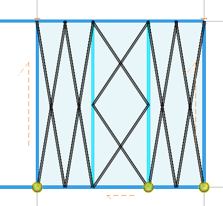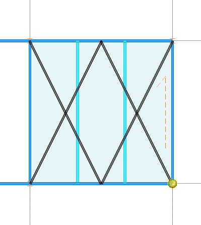 - 选择围区后,会自动将围区范围内的内部梁,作为水平支撑的竖杆,优先从选中范围的最左侧/最上侧开始首列/首行的支撑布置。