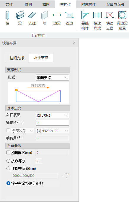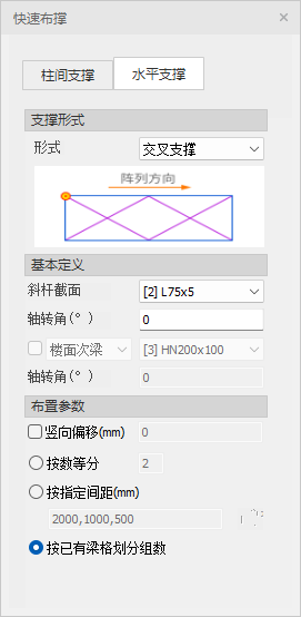 【按指定间距】:输入框内输入布置的水平支撑的布置间距,用间隔符隔开(英文逗号等);