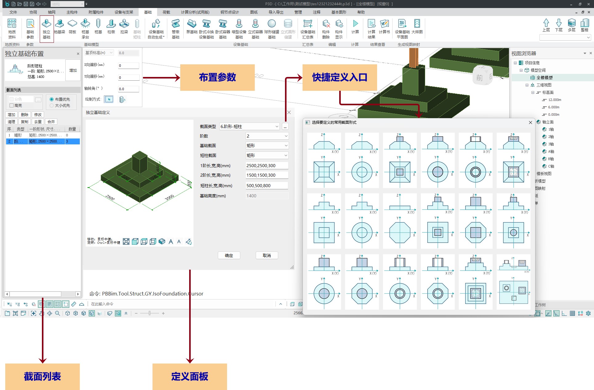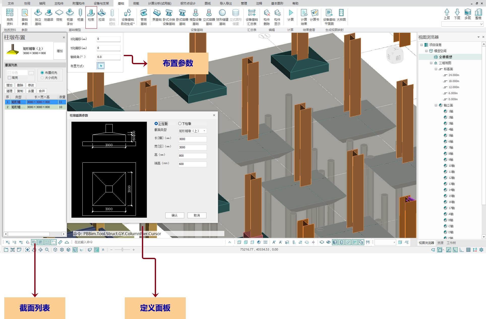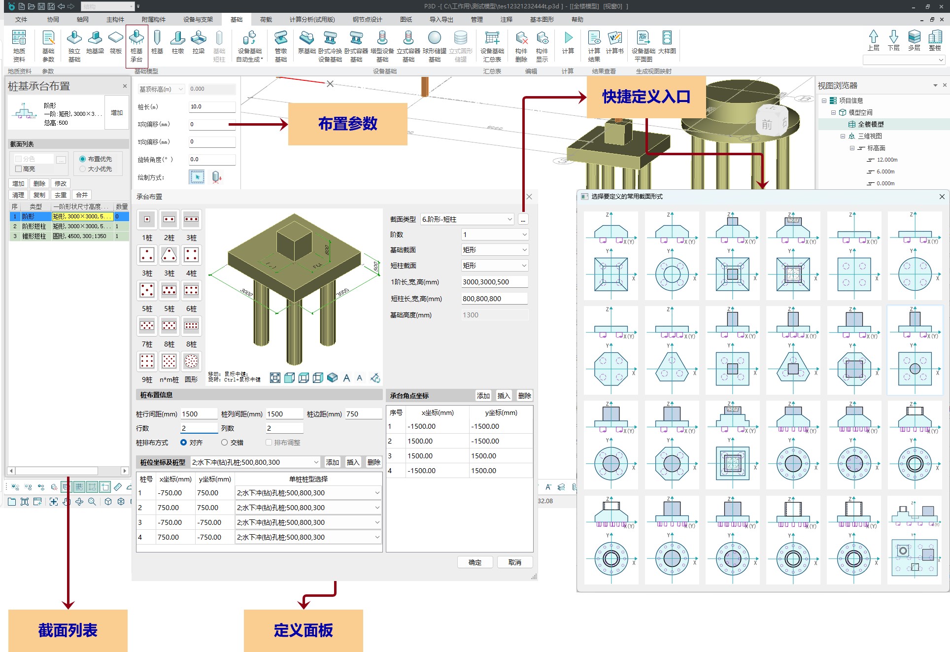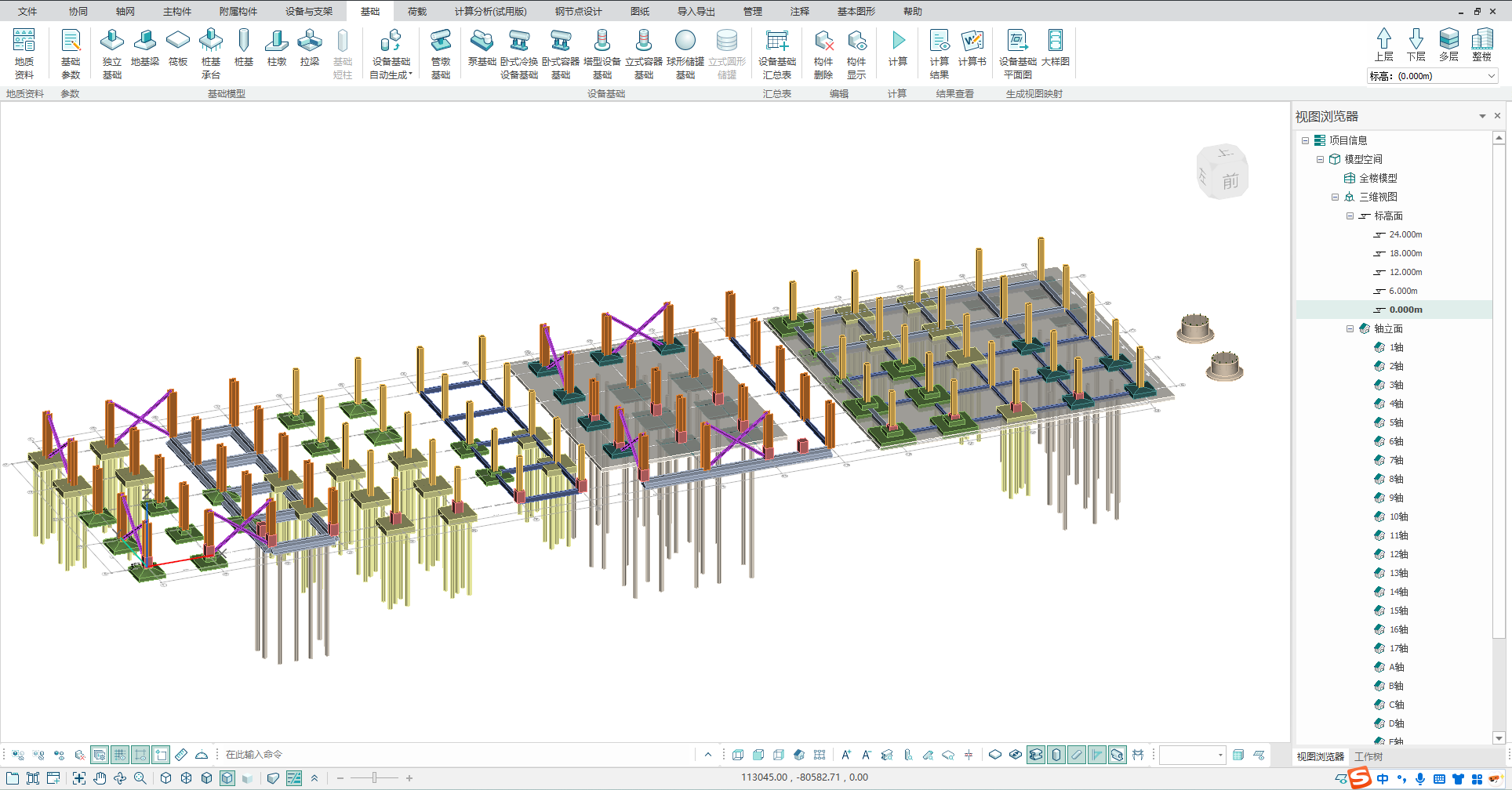 目录 搜索 展开 更新说明20251230版本更新说明更新概要1.协同模块更新点1.1通用机制1.2识图表收资⭐1.2.1操作流程介绍1.2.2功能特点1.3数据收资1.4接口1.4.1工艺协同类软件接口1.4.2计算类软件接口2.上部建模模块更新点2.1通用建模2.1.1工作树⭐2.1.2布置修改2.1.3高分屏适配⭐2.1.4楼板优化2.2快速建模⭐2.2.2快速布置水平撑2.2.1快速悬臂构件2.2.3快速洞边梁2.3智能建模2.3.1设备支架自动布梁2.4附属建模2.4.1直梯栏杆适配参数库模式2.4.2栏杆打断交互⭐3.计算模块更新点3.1荷载导荷3.2振动计算⭐3.3工况优化4.出图模块更新点4.1优化功能4.2新增海外出图模式5.基础模块更新点5.1基础模块更新点⭐5.2设备基础模块更新点5.2.1支持SH/T 3030-2025 石油化工塔型设备基础设计规范⭐5.2.2球形储罐设备及设备基础建模5.2.3支持卧式三支墩建模及计算5.2.4其他更新点1.总体介绍1.1基本功能介绍1.1.1 协同1.1.2 建模1.1.3 计算1.1.4 节点设计1.1.5 出图1.1.6 算量1.2软件界面1.2.1 菜单栏1.2.2 图形空间1.2.3 项目树1.2.4 快捷命令2.轴网2.1导入模型2.1.1导入PMCAD2.1.2增量导入PMcad2.2轴网标高2.2.1轴网标高2.2.2轴网编辑2.2.3标高编辑2.3工作面2.3.1创建工作面2.3.2工作面管理器2.3.3退出工作面2.3.4工作面的快捷按钮2.4修改工具2.4.1移动2.4.2复制2.4.3旋转2.4.4镜像2.4.5阵列2.4.6删除2.4.7拉伸2.4.8延伸2.4.9起坡2.5测量工具2.5.1测量长度2.5.2测量角度2.5.3测量面积2.5.4测量标高2.5.5测量坐标3.主构件3.1上部构件3.1.1柱3.1.2梁3.1.3支撑3.1.4快速次梁3.1.5快速支撑3.1.6拾取布置3.1.7截面刷3.2楼板3.2.1混凝土板3.2.2花纹钢板3.2.3钢格栅板3.2.4压型钢板3.2.5洞口3.2.6全房间洞3.2.7楼板设置3.2.8改板方向3.3修改3.3.1偏心对齐3.3.2构件删除3.3.3标高复制3.3.4主次梁3.3.5梁合并3.3.6梁拆分3.4基础构件3.4.1桩基3.5材料定义3.5.1全局材料3.5.2材料修改3.6显示3.6.1截面显示3.6.2构件显示3.6.3构件查找3.6.43D剖切3.6.5退出剖切4.附属构件4.1楼梯栏杆4.1.1钢直梯4.1.2钢斜梯4.1.3栏杆4.2附加构件4.2.1预埋件4.2.2地脚螺栓4.2.3翻边4.2.4钢平台4.2.5钢通道4.2.6支墩4.2.7支架4.2.8支吊架4.2.9T型支架4.2.10板式支架5.设备基础5.1收资5.1.1设备条件5.2地质资料5.2.1地质资料5.3总参5.3.1统一规定5.3.2自动生成基础规则5.4设备基础5.4.1卧式冷换设备基础5.4.2卧式容器基础5.4.3塔型设备基础5.4.4立式容器基础5.4.6管墩基础5.5设备支架5.5.1立式设备支架5.5.2卧式设备支架5.6汇总表5.6.1设备基础汇总表5.7计算6.协同6.1设备条件6.2工艺提资6.2.1荷载收资6.2.2洞口收资6.2.3埋件收资6.3智能生成6.3.1自动布梁6.4专业协同6.4.1发布设置6.4.2发布版本6.4.3参照6.5链接模型6.5.1链接P3D6.5.2链接管理7.荷载7.1荷载设置7.1.1工况管理7.1.2导荷方式7.1.3荷载显示7.2荷载布置7.2.1梁荷载7.2.2柱荷载7.2.3板均布荷载7.2.4板局部荷载7.2.5节点荷载7.3荷载快速布置7.3.1快速布置点荷载7.3.2快速布置线荷载7.3.3快速布置面荷载7.4荷载编辑7.4.1荷载修改7.4.2荷载删除7.4.3荷载清理7.4.4拾取布置7.5约束指定7.5.1支座约束7.5.2杆端约束7.5.3支座约束删除8.计算分析8.1设计层8.1.1模型检查8.1.2划分设计层8.2计算8.2.1生成分析模型8.2.2计算参数8.2.3计算8.3结果8.3.1数检定位8.3.2结果查看9.钢节点设计9.1导入结果9.1.1读取计算9.2设计方式9.3规格化节点设计9.3.1通用参数9.3.2节点配置9.3.3节点生成9.4按内力生成节点9.4.1节点参数9.4.2节点生成9.4.3节点归并9.5修改节点9.5.1节点修改9.5.2节点表修改9.6节点查询9.6.1节点设计结果9.6.2节点计算书9.6.3编号显示9.7内力查看9.8清除数据10.图纸10.1参数10.1.1 文字标准10.1.2 绘图参数10.2生成视图映射10.2.1 平面图10.2.2 立面图10.2.3 大样图10.2.4 节点图10.3填充修改10.4生成图纸10.5清单统计10.5.1 统计参数10.5.2 生成清单10.6导出图纸 暂无相关搜索结果! 5.1基础模块更新点⭐ 新增主基础建模功能 独立基础建模 承台建模 地基梁建模 筏板建模 桩建模 柱墩建模 拉梁建模