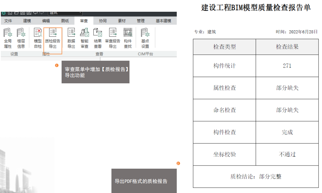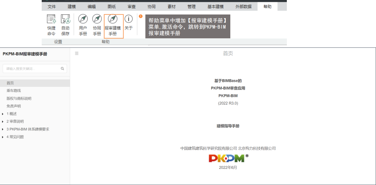 目录 搜索 展开 首页乘车路线版权与商标说明免责声明更新说明20242024R1.02024R1.12024R1.22024R1.32024R1.42024R2.02024R2.12024R2.220232023R1.020222022R3.12022R3.02022R2.12022R2.02022R1.42022R1.32022R1.22022R1.020252025R1.1工作环境最低运行环境启动界面用户操作界面快速访问工具栏视图盒子模型操作视图区命令提示行项目浏览器属性面板多窗口显示设置视图工具条光照亮度三维坐标捕捉设置通用操作文件(平台)功能键临时辅助线抬头工具栏追踪器自定义工具条临时尺寸线参考线、夹点弹出式小面板右键菜单专业建模标高标高绘制楼层管理复制构件局部复制删除构件轴网定位正交轴网轴线绘制识别联动命名排序专业构件墙创建墙编辑墙梁创建梁编辑梁板创建板编辑板柱创建柱编辑柱屋顶创建屋顶编辑屋顶幕墙创建幕墙编辑幕墙门创建门编辑门窗创建窗编辑窗自定义门窗自定义门窗预设自定义飘窗、转角窗框板编辑嵌板编辑自定义门窗的调用与管理自定义门窗导出/导入洞口创建洞口编辑洞口楼梯创建楼梯环境外编辑楼梯环境内编辑楼梯台阶创建台阶编辑台阶坡道创建坡道编辑坡道栏杆扶手创建栏杆编辑栏杆复杂截面管理器栏杆样式散水创建散水编辑散水房间布置房间配置房间分隔区域划分房间设置面层面层面层分格线场地创建场地编辑场地用地控制线创建用地控制线编辑用地控制线三维文字辅助工具识别图纸创建工作平面工作平面管理器基本建模编辑工具专业编辑工具对齐修剪延伸附着布尔剪切剪切面对齐打断端部裁剪倒角裁剪刷新偏移删除附着通用编辑移动镜像删除阵列复制旋转过滤选择过滤器增强过滤器测量长度测量角度测量面积测量标高测量坐标测量组合组合解组开始组暂停组编辑组块块定义块分解块编辑块管理拾取刷新拾取属性刷新属性计算分析计算分析内外墙判定指标分析重叠处理内外墙判定结果注释二维工具线型二维工具填充通用标注逐点标注直径标注半径标注弧长标注角度标注标高标注引出标注箭头引注索引标注多层标注折断线变更云线三维标高标注自动标注通用文字单行文字多行文字文字识别通用表格插入表格&表格编辑视图视图创建3D剖切工具局部剖切创建立面创建剖面门窗大样图纸生成图纸导出图纸清单统计清单生成清单样式清单单位清单结果审查审查流程设置全局属性楼层信息模型自检审查智能审查审查结果数据导出审查报告导出构件查找CIM平台基点设置导出广州汇交格式审查IFC深圳IFC基点设置选择标准建筑赋值空间赋值构件赋值规则配置导出SZ-IFC上海IFC选择标准基点设置楼层设置导出SH-IFC协同链接模型链接P3D链接管理碰撞检查碰撞检查碰撞结果碰撞报告净高分析净高设置净高平面净高检查净高刷新建筑开洞提资云协同合并/拆分工程合并工程批量合并拆分工程管理项目项目信息工程参数材料材料设置复合材料管理器表面材质库素材库二三维构件的导入、导出二维图块导入、导出三维图块编辑、删除二维图块编辑、删除属性修改三维构件二维构件素材修复/精度设置洁具库界面洁具的布置属性修改/更新洁具符号库组件创建bfa组件属性管理参数驱动平面工具实体工具造型工具扫掠体旋转体拉伸体融合体多界面融合截面集布尔运算交集并集差集辅助建模工作平面创建工作平面工作平面管理编辑操作说明临时坐标系组件编辑可见性材质库云端库参数化组件库(平台)类别管理类别属性管理器(平台)楼层属性楼层属性管理器裁剪裁剪方式扣减设置构件子类别构件子类别管理显示全局显示样式构件可见性方案视图覆盖方案注释样式尺寸样式文字样式快捷命令导入导出参照底图导入底图管理参照匹配导入导出导出PMODEL导入PMODEL导出IFC导入IFC导出FBX导入3ds导入SKP导入STEP对接品茗导出图片外部数据控制晨曦深化构件筛选晨曦钢筋显隐晨曦钢筋删除绿色低碳导入BDLS导出BDLS**文字示意**二级文字示意格式模板 暂无相关搜索结果! 2022R3.0 集成通用1.高清图片导出 建筑专业1.【楼梯】楼梯属性优化2.【楼梯】剪刀楼梯3.【审查】栏杆报审属性的优化4.【审查】区域报审属性的优化5.【审查】审查结果查看的优化6.【审查】增加青岛审查范围及导出格式7.【审查】增加导出质检报告功能8.【审查】增加报审建模手册功能
