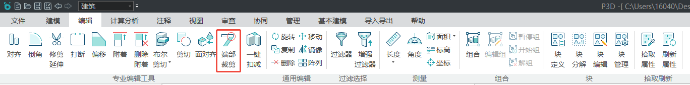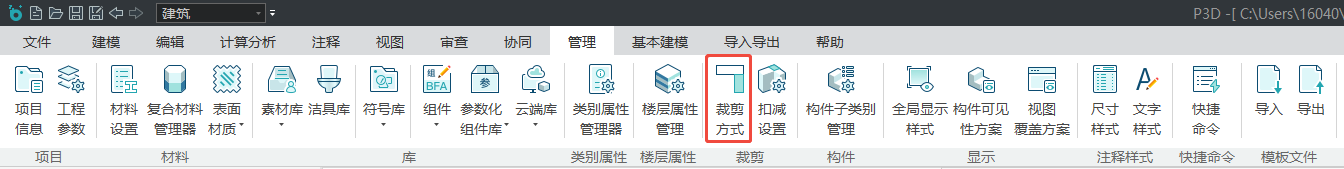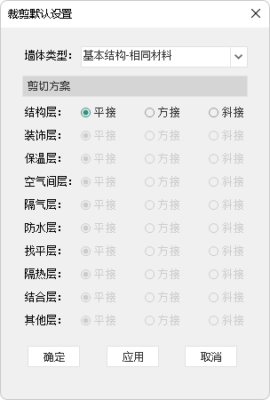 目录 搜索 展开 首页乘车路线版权与商标说明免责声明更新说明20242024R1.02024R1.12024R1.22024R1.32024R1.42024R2.02024R2.12024R2.220232023R1.020222022R3.12022R3.02022R2.12022R2.02022R1.42022R1.32022R1.22022R1.020252025R1.1工作环境最低运行环境启动界面用户操作界面快速访问工具栏视图盒子模型操作视图区命令提示行项目浏览器属性面板多窗口显示设置视图工具条光照亮度三维坐标捕捉设置通用操作文件(平台)功能键临时辅助线抬头工具栏追踪器自定义工具条临时尺寸线参考线、夹点弹出式小面板右键菜单专业建模标高标高绘制楼层管理复制构件局部复制删除构件轴网定位正交轴网轴线绘制识别联动命名排序专业构件墙创建墙编辑墙梁创建梁编辑梁板创建板编辑板柱创建柱编辑柱屋顶创建屋顶编辑屋顶幕墙创建幕墙编辑幕墙门创建门编辑门窗创建窗编辑窗自定义门窗自定义门窗预设自定义飘窗、转角窗框板编辑嵌板编辑自定义门窗的调用与管理自定义门窗导出/导入洞口创建洞口编辑洞口楼梯创建楼梯环境外编辑楼梯环境内编辑楼梯台阶创建台阶编辑台阶坡道创建坡道编辑坡道栏杆扶手创建栏杆编辑栏杆复杂截面管理器栏杆样式散水创建散水编辑散水房间布置房间配置房间分隔区域划分房间设置面层面层面层分格线场地创建场地编辑场地用地控制线创建用地控制线编辑用地控制线三维文字辅助工具识别图纸创建工作平面工作平面管理器基本建模编辑工具专业编辑工具对齐修剪延伸附着布尔剪切剪切面对齐打断端部裁剪倒角裁剪刷新偏移删除附着通用编辑移动镜像删除阵列复制旋转过滤选择过滤器增强过滤器测量长度测量角度测量面积测量标高测量坐标测量组合组合解组开始组暂停组编辑组块块定义块分解块编辑块管理拾取刷新拾取属性刷新属性计算分析计算分析内外墙判定指标分析重叠处理内外墙判定结果注释二维工具线型二维工具填充通用标注逐点标注直径标注半径标注弧长标注角度标注标高标注引出标注箭头引注索引标注多层标注折断线变更云线三维标高标注自动标注通用文字单行文字多行文字文字识别通用表格插入表格&表格编辑视图视图创建3D剖切工具局部剖切创建立面创建剖面门窗大样图纸生成图纸导出图纸清单统计清单生成清单样式清单单位清单结果审查审查流程设置全局属性楼层信息模型自检审查智能审查审查结果数据导出审查报告导出构件查找CIM平台基点设置导出广州汇交格式审查IFC深圳IFC基点设置选择标准建筑赋值空间赋值构件赋值规则配置导出SZ-IFC上海IFC选择标准基点设置楼层设置导出SH-IFC协同链接模型链接P3D链接管理碰撞检查碰撞检查碰撞结果碰撞报告净高分析净高设置净高平面净高检查净高刷新建筑开洞提资云协同合并/拆分工程合并工程批量合并拆分工程管理项目项目信息工程参数材料材料设置复合材料管理器表面材质库素材库二三维构件的导入、导出二维图块导入、导出三维图块编辑、删除二维图块编辑、删除属性修改三维构件二维构件素材修复/精度设置洁具库界面洁具的布置属性修改/更新洁具符号库组件创建bfa组件属性管理参数驱动平面工具实体工具造型工具扫掠体旋转体拉伸体融合体多界面融合截面集布尔运算交集并集差集辅助建模工作平面创建工作平面工作平面管理编辑操作说明临时坐标系组件编辑可见性材质库云端库参数化组件库(平台)类别管理类别属性管理器(平台)楼层属性楼层属性管理器裁剪裁剪方式扣减设置构件子类别构件子类别管理显示全局显示样式构件可见性方案视图覆盖方案注释样式尺寸样式文字样式快捷命令导入导出参照底图导入底图管理参照匹配导入导出导出PMODEL导入PMODEL导出IFC导入IFC导出FBX导入3ds导入SKP导入STEP对接品茗导出图片外部数据控制晨曦深化构件筛选晨曦钢筋显隐晨曦钢筋删除绿色低碳导入BDLS导出BDLS**文字示意**二级文字示意格式模板 暂无相关搜索结果! 裁剪方式 功能介绍该功能用于设置不同结构类型的墙体之间的裁剪关系。 功能规则可在【管理】中选择【裁剪方式】,在建模前对各类墙体进行裁剪设置;墙体裁剪方式:可以根据基本结构-相同材料、基本结构-不同材料、复合结构-相同材料、复合结构-不同材料各功能层次分层调节交接方式 在【编辑】选项栏目中,点击【端部裁剪】,可以对裁剪设置修改,可以通过点击每一层的连接方式,以及选择交接线条是否融合,对交接线条进行显示
