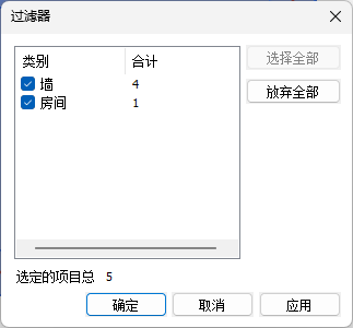 目录 搜索 展开 首页乘车路线版权与商标说明免责声明更新说明20242024R1.02024R1.12024R1.22024R1.32024R1.42024R2.02024R2.12024R2.220232023R1.020222022R3.12022R3.02022R2.12022R2.02022R1.42022R1.32022R1.22022R1.020252025R1.1工作环境最低运行环境启动界面用户操作界面快速访问工具栏视图盒子模型操作视图区命令提示行项目浏览器属性面板多窗口显示设置视图工具条光照亮度三维坐标捕捉设置通用操作文件(平台)功能键临时辅助线抬头工具栏追踪器自定义工具条临时尺寸线参考线、夹点弹出式小面板右键菜单专业建模标高标高绘制楼层管理复制构件局部复制删除构件轴网定位正交轴网轴线绘制识别联动命名排序专业构件墙创建墙编辑墙梁创建梁编辑梁板创建板编辑板柱创建柱编辑柱屋顶创建屋顶编辑屋顶幕墙创建幕墙编辑幕墙门创建门编辑门窗创建窗编辑窗自定义门窗自定义门窗预设自定义飘窗、转角窗框板编辑嵌板编辑自定义门窗的调用与管理自定义门窗导出/导入洞口创建洞口编辑洞口楼梯创建楼梯环境外编辑楼梯环境内编辑楼梯台阶创建台阶编辑台阶坡道创建坡道编辑坡道栏杆扶手创建栏杆编辑栏杆复杂截面管理器栏杆样式散水创建散水编辑散水房间布置房间配置房间分隔区域划分房间设置面层面层面层分格线场地创建场地编辑场地用地控制线创建用地控制线编辑用地控制线三维文字辅助工具识别图纸创建工作平面工作平面管理器基本建模编辑工具专业编辑工具对齐修剪延伸附着布尔剪切剪切面对齐打断端部裁剪倒角裁剪刷新偏移删除附着通用编辑移动镜像删除阵列复制旋转过滤选择过滤器增强过滤器测量长度测量角度测量面积测量标高测量坐标测量组合组合解组开始组暂停组编辑组块块定义块分解块编辑块管理拾取刷新拾取属性刷新属性计算分析计算分析内外墙判定指标分析重叠处理内外墙判定结果注释二维工具线型二维工具填充通用标注逐点标注直径标注半径标注弧长标注角度标注标高标注引出标注箭头引注索引标注多层标注折断线变更云线三维标高标注自动标注通用文字单行文字多行文字文字识别通用表格插入表格&表格编辑视图视图创建3D剖切工具局部剖切创建立面创建剖面门窗大样图纸生成图纸导出图纸清单统计清单生成清单样式清单单位清单结果审查审查流程设置全局属性楼层信息模型自检审查智能审查审查结果数据导出审查报告导出构件查找CIM平台基点设置导出广州汇交格式审查IFC深圳IFC基点设置选择标准建筑赋值空间赋值构件赋值规则配置导出SZ-IFC上海IFC选择标准基点设置楼层设置导出SH-IFC协同链接模型链接P3D链接管理碰撞检查碰撞检查碰撞结果碰撞报告净高分析净高设置净高平面净高检查净高刷新建筑开洞提资云协同合并/拆分工程合并工程批量合并拆分工程管理项目项目信息工程参数材料材料设置复合材料管理器表面材质库素材库二三维构件的导入、导出二维图块导入、导出三维图块编辑、删除二维图块编辑、删除属性修改三维构件二维构件素材修复/精度设置洁具库界面洁具的布置属性修改/更新洁具符号库组件创建bfa组件属性管理参数驱动平面工具实体工具造型工具扫掠体旋转体拉伸体融合体多界面融合截面集布尔运算交集并集差集辅助建模工作平面创建工作平面工作平面管理编辑操作说明临时坐标系组件编辑可见性材质库云端库参数化组件库(平台)类别管理类别属性管理器(平台)楼层属性楼层属性管理器裁剪裁剪方式扣减设置构件子类别构件子类别管理显示全局显示样式构件可见性方案视图覆盖方案注释样式尺寸样式文字样式快捷命令导入导出参照底图导入底图管理参照匹配导入导出导出PMODEL导入PMODEL导出IFC导入IFC导出FBX导入3ds导入SKP导入STEP对接品茗导出图片外部数据控制晨曦深化构件筛选晨曦钢筋显隐晨曦钢筋删除绿色低碳导入BDLS导出BDLS**文字示意**二级文字示意格式模板 暂无相关搜索结果! 过滤器 功能介绍可按类别筛选指定范围内的构件。 使用说明操作步骤 鼠标选中需要进行过滤的多个构件, 再左键单击【过滤器】命令,会弹出过滤器对话框。 在对话框中选择想要选中的构件类型, 左键单击确定,相应类型构件被选中,同时关闭对话框实现过滤操作。 图1 过滤器对话框