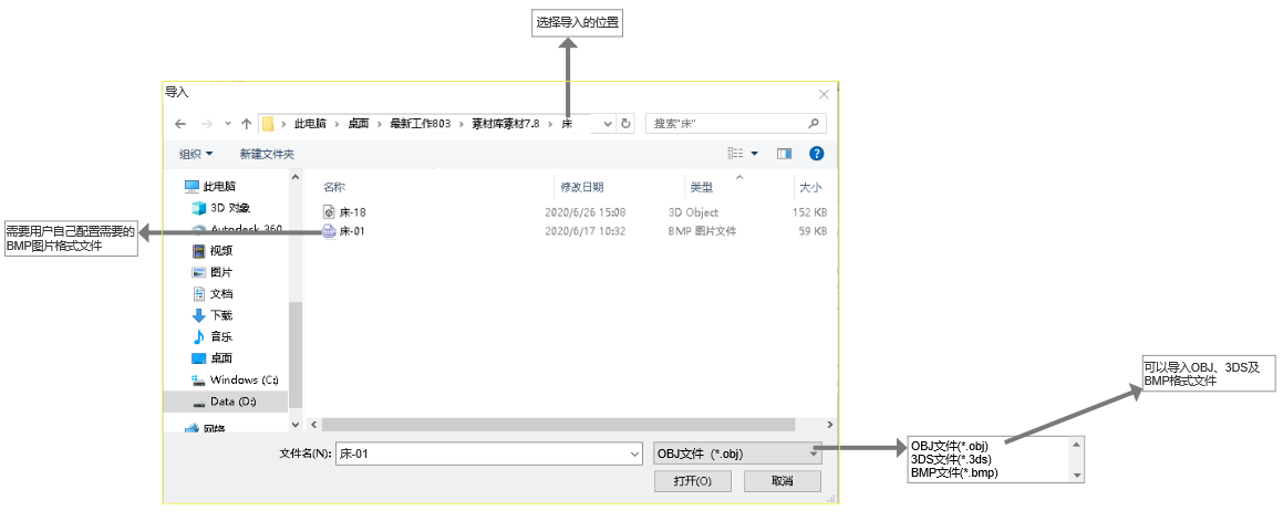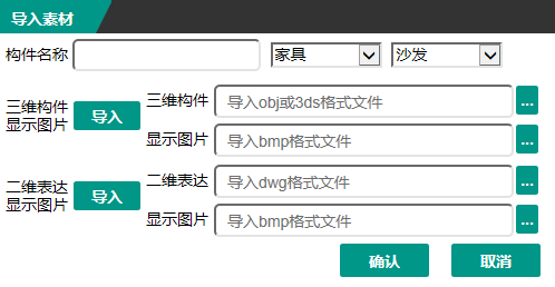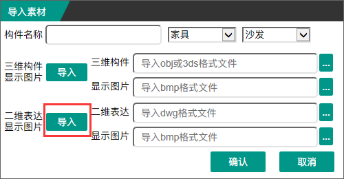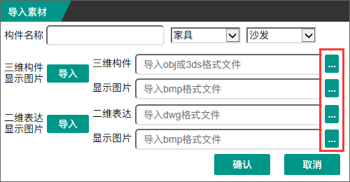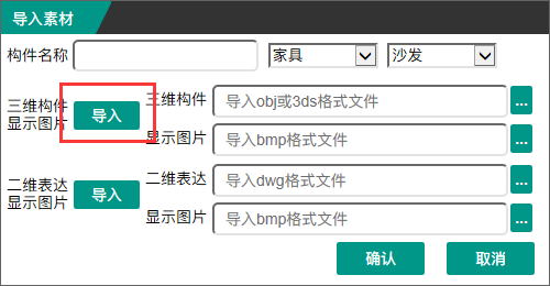 - 点击三维构件和显示图片旁边的”导入“弹出对话框: