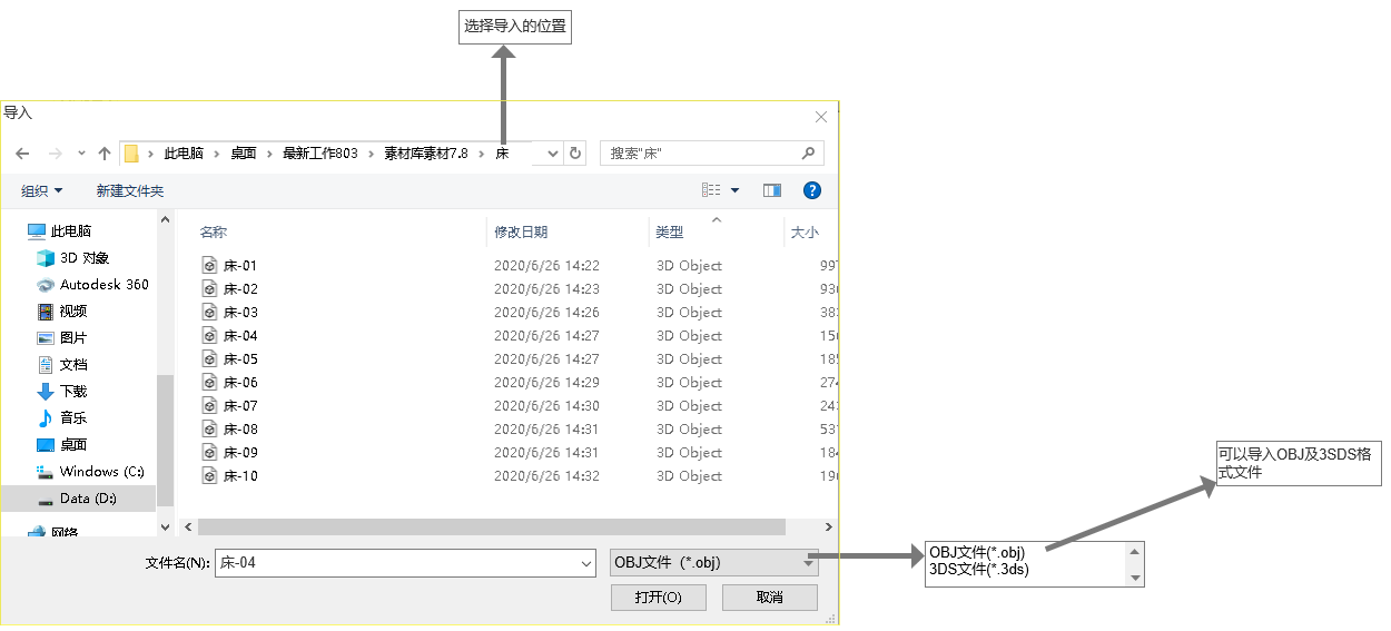 可以同时导入OBJ和3DS两种格式的文件也可以单独导入一种格式的文件: