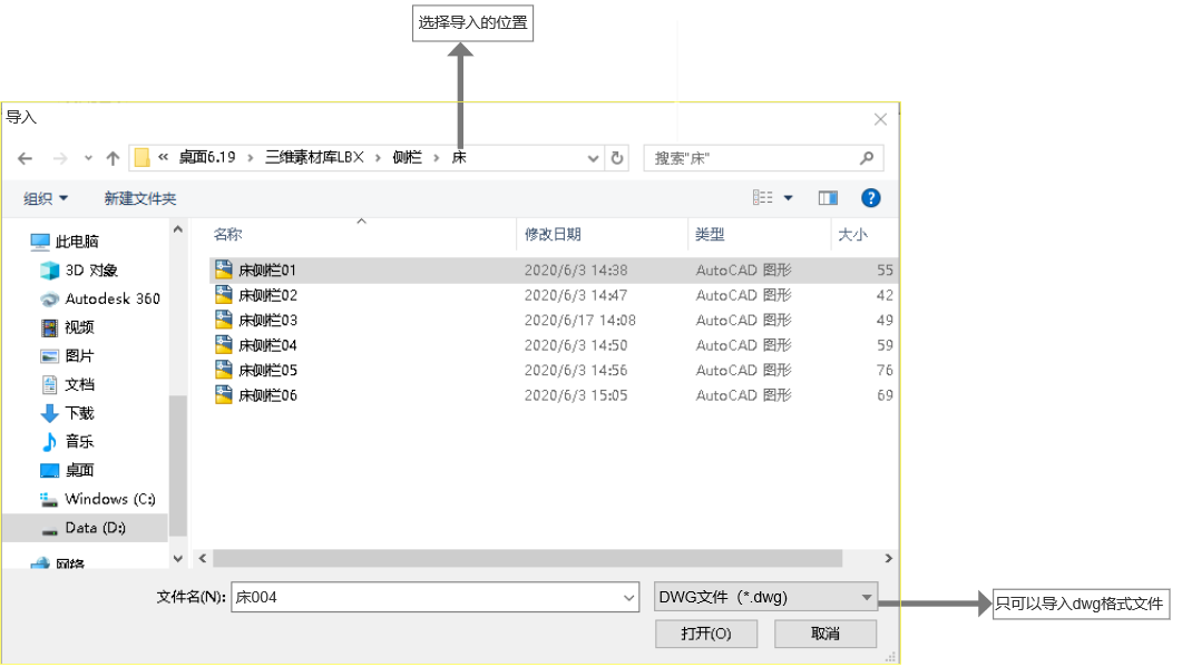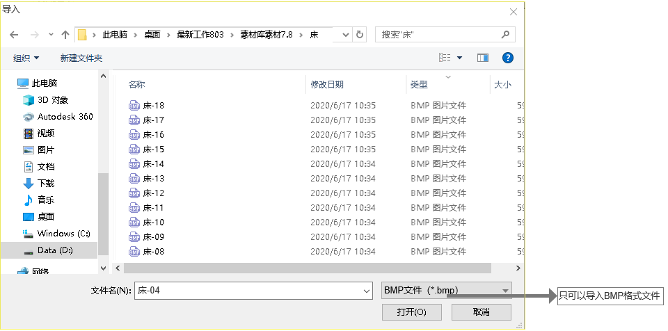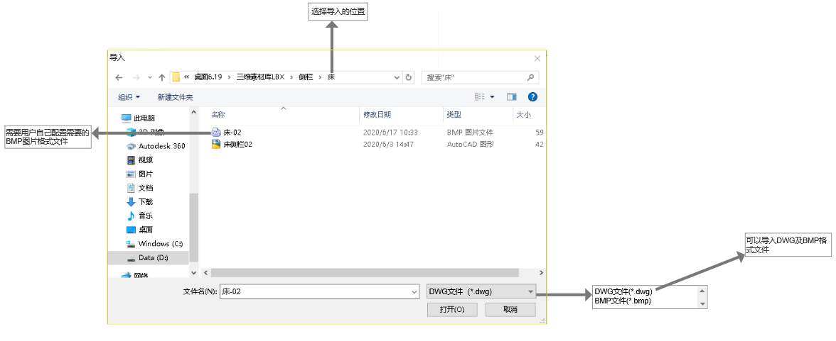 图6 点击二维表达和显示图片旁边的“导入”可以同时导入DWG和BMP两种格式的文件也可以单独导入一种格式的文件(图7):