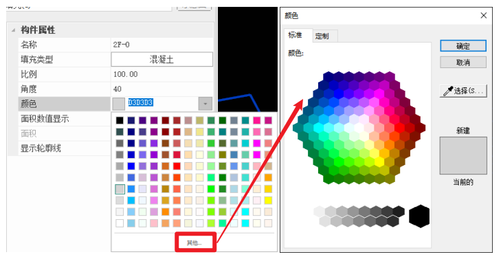 - <颜色>:点击下拉栏切换选择填充图案颜色;