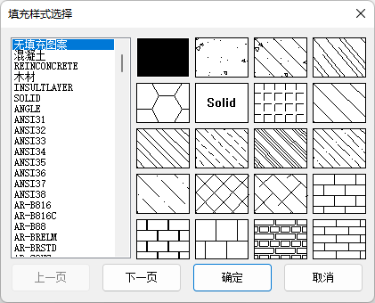 - <填充类型>:点击填充类型,弹出填充样式选择对话框,可以选择不同的填充类型;