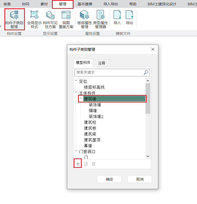该功能用于添加或修改构件子类别。
