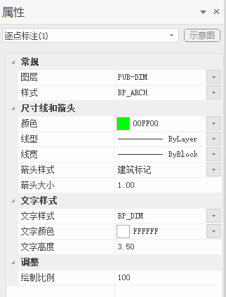 - 点取第一个标注点作为起始点,点取第二个标注点确定尺寸线方向,