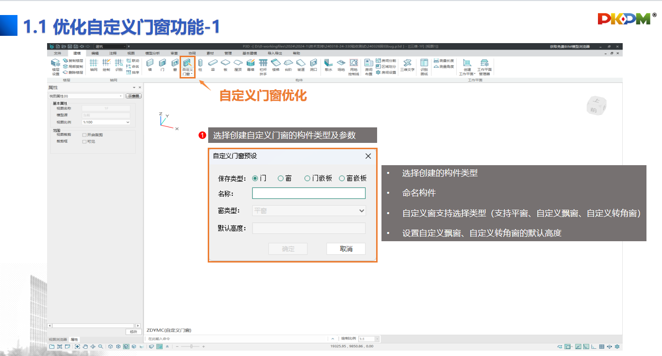 1.【自定义门窗】优化预设项选择,类型新增支持平窗、自定义飘窗、自定义转角窗