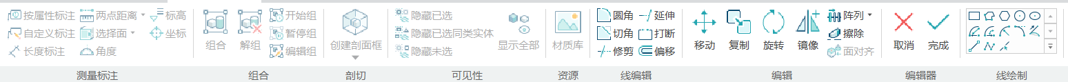 点击【创建路径】工具,可进入创建扫掠路径在位编辑环境中,除线编辑、编辑、编辑器、线绘制工具箱外,其他菜单功能均置灰处理。其中线绘制工具箱同工程环境中线图元工具功能一致,如图3;