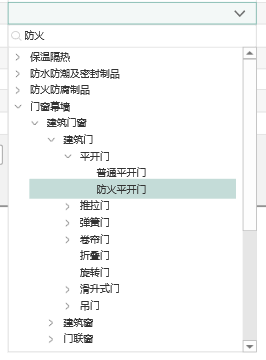- <标识名称>——支持查看每个构件智能匹配后的标识结果,双击构件ID,在模型中高亮定位显示;同时支持结果修改,点击下拉栏,弹出如下图所示的树控件,在树控件中选择标识,单击标识则标识显示在文本框中,即完成标识修改操作;另外,树控件上方设有智能检索框,支持快速查找标识;
