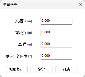 完成基点指定后,在“东/西X”、“南/北Y”、“高程”、“到正北的角度”文本框中输入基点的坐标值。