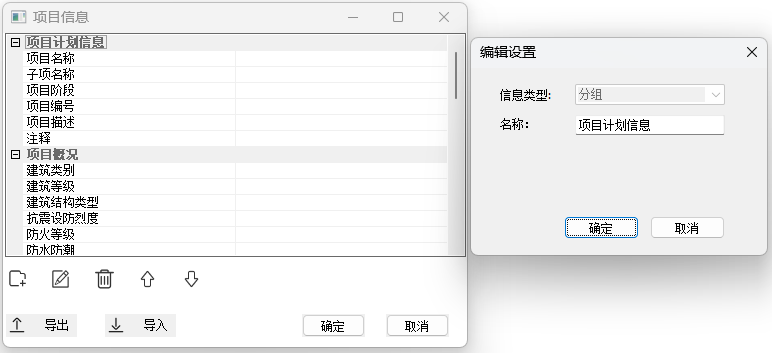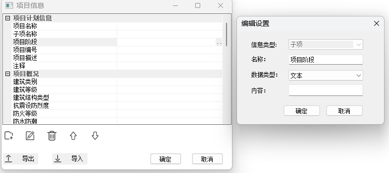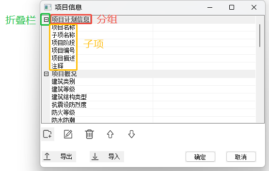 - <导入>:可将配置好的项目信息进行导入,导入项目信息将覆盖当前项目信息内容。