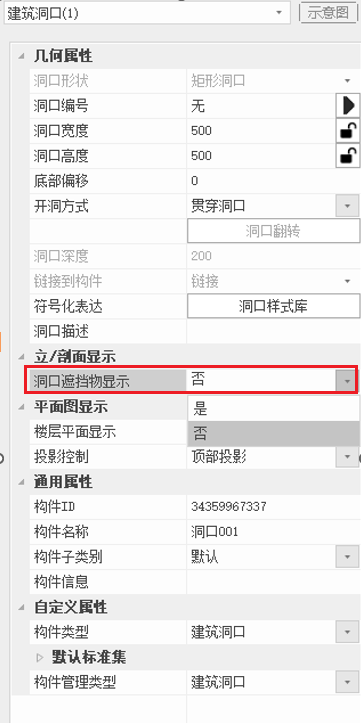 - 可调节显示立剖面投影图中洞口后侧的构件是否显示。