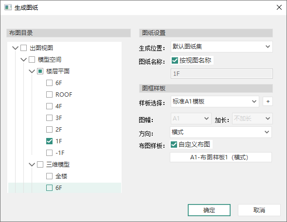 - 布图样板选择图纸中视图排布的方式,支持自动化排布/手动自定义排布;