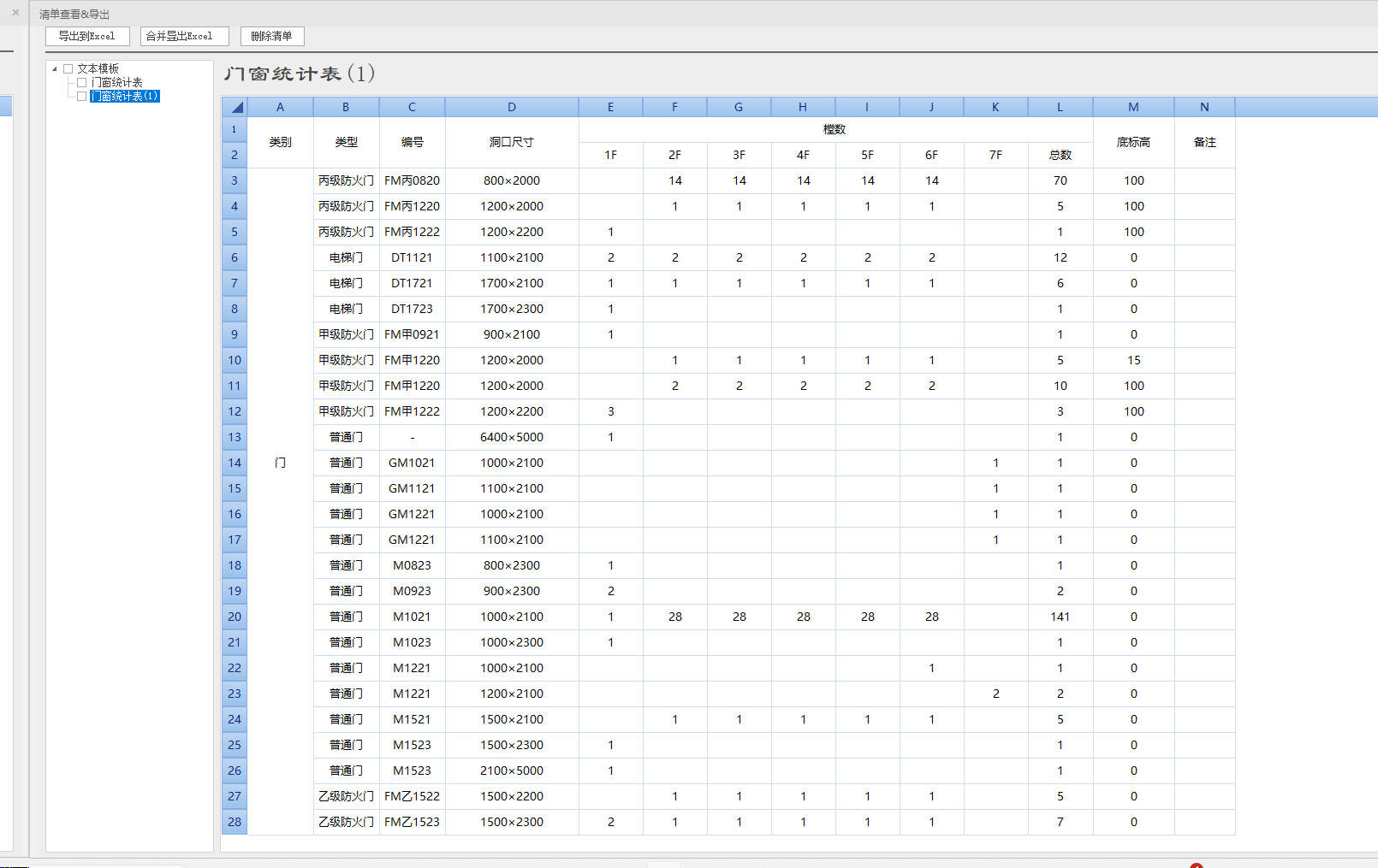 执行【清单结果】命令,弹出生成的【清单查看&导出】对话框。对话框如下: