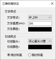- 文字高度:输入三维标高文字高度;