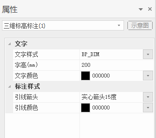 图3 三维标高标注属性面板