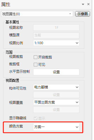 点击属性栏中颜色方案选项,可将颜色方案中任意方案应用到当前视图