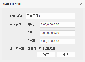 工作平面是一种被创建的、可无限延伸的平面。在工作平面模式启用的情况下,仅允许用户在指定的平面内定位或拾取坐标点。该功能允许通过三种方式来创建工作平面:1.【创建工作平面】、2.【拾取工作平面】、3.【参数创建】。