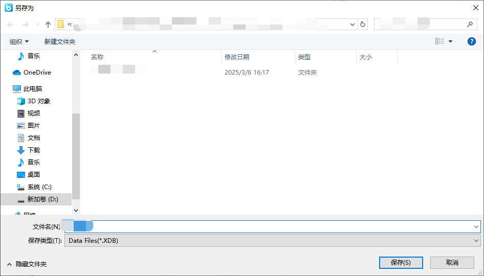 点击确定,将出现另存为对话框,选择保存路径,即可保存.XDB格式文件。