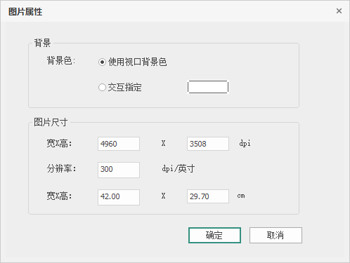 点击功能按钮后,弹出相应对话框,如下图所示。可在本对话框内,修改图片的背景颜色和图片尺寸。