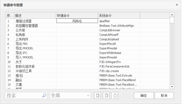 双击表格中“快捷命令”列中的单元格,可修改描述对应功能的快捷命令。