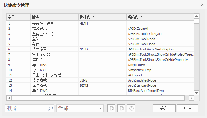 - <恢复默认设置>:通过该命令,可将快捷命令配置恢复至默认状态。启动本功能后,将显示二次确认弹窗。若选择“确定”,将执行恢复操作。恢复操作不可撤回。