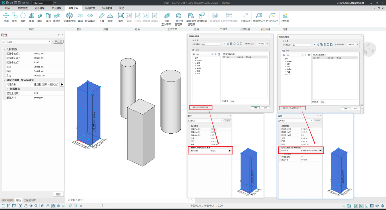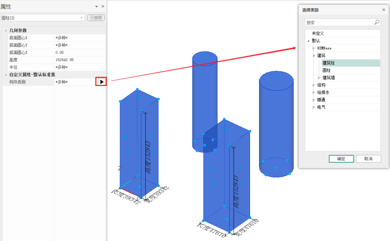 当选择多个对象时,也支持编辑构件类别,选定的类别会更新到所有选定对象上,如图