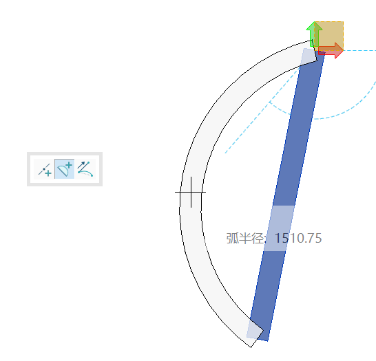 图3曲边<使用切线编辑线段>:鼠标预选的方向与墙体所成切线方向的位置,改变为弧形墙;