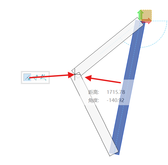 - 点击墙的<夹点>鼠标移动到目标位置进行编辑操作,左键点击完成操作。
