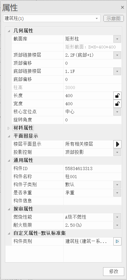 - 在属性面板中对构件的属性信息进行修改,