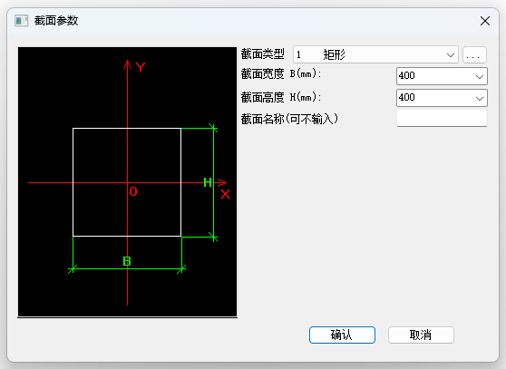 - 【自定义】:激活截面按钮,点击弹出截面参数的面板,如图所示;