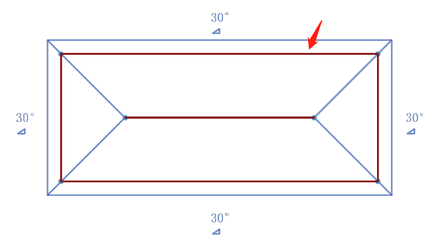 点击普通矩形屋顶屋脊线的夹点,可对你所选择的这此点进行【拉伸屋脊】、【平移屋脊】。拉伸屋脊,可沿着屋脊线平行的方向,拉伸改变屋脊线的长短。平移屋脊,可沿屋脊线垂直的方向进行移动屋脊的位置,改变两侧屋顶的坡度。仅普通屋顶类型创建的矩形屋顶具备,其它屋顶无。