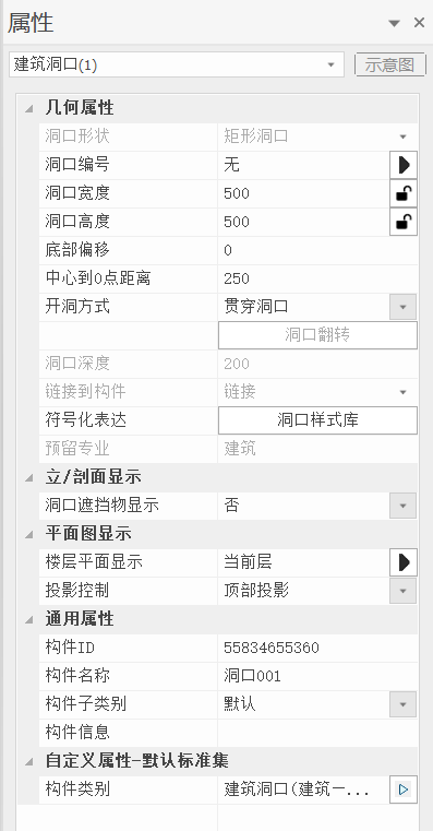 - 【洞口编号】:洞口在平面图中显示的编号;