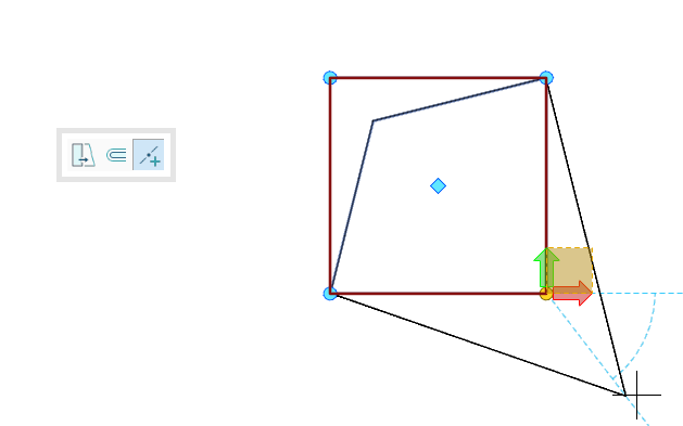 【拉伸】:点击边线、夹点时,可拉伸两个方向的边;