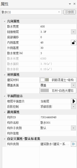 - 【拾取线】:拾取视图中的二维线条(包括参照底图和用户在模型中创建的二维线条)创建散水。