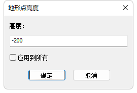 【提升地形点】:提升(输入正值)或下降(输入负值)此地形点或所选等高线的的高度,可勾选应用到场地关联的起伏位置。