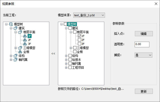 - <链接参照>:点击链接参照对话框跳转至视图参照并选择参照的专业和楼层,如图2。