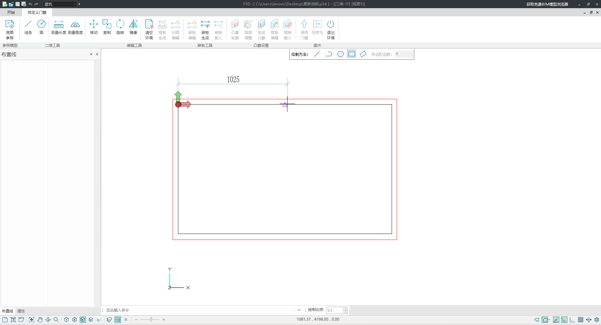 - 用户在此环境内可用线条工具配合编辑工具,按照实际需求尺寸绘制嵌板样式。