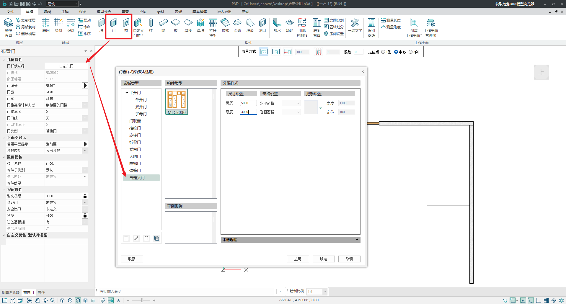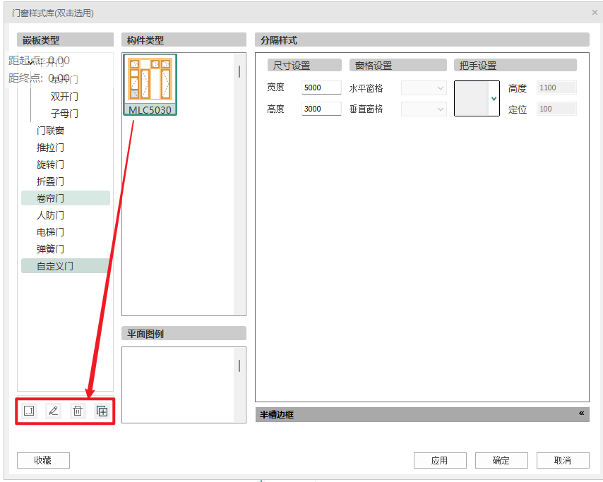 - 在弹出的门窗面板中选择自定义门窗样式,
