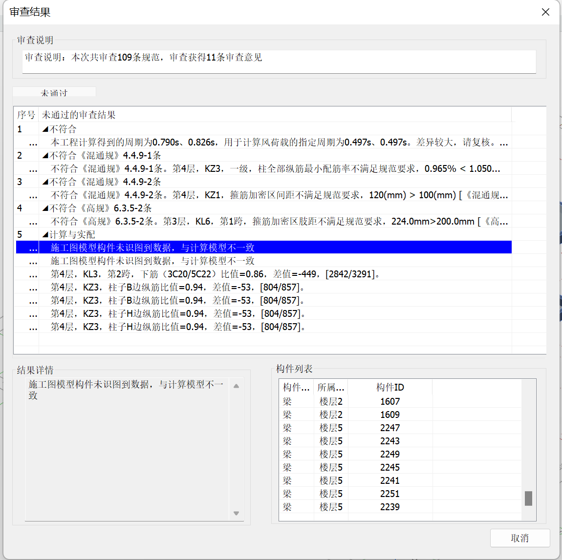 目录 搜索 展开 首页乘车路线版权与商标说明免责声明1 概述1.1 XDB概述1.2 XDB生成流程概述1.3 支持软件说明1.3.1 整体解决方案1.3.2 建筑专业1.3.3 结构专业1.3.4 机电(给排水、暖通、电气)2 审查说明2.1 审查方式2.2 审查范围2.3 审查模型拆分说明2.4 审查逻辑2.5 审查构件3 PKPM-BIM体系建模要求3.1 BIM建模要求3.1.1 建筑专业3.1.1.1标高与楼层3.1.1.2墙3.1.1.3门3.1.1.4窗3.1.1.5板3.1.1.6楼梯3.1.1.7台阶3.1.1.8坡道3.1.1.9屋顶3.1.1.10幕墙3.1.1.11洞口3.1.1.12房间3.1.1.13区域3.1.1.14栏杆3.1.1.15其他3.1.2 结构专业3.1.2.1 梁、柱、墙识图3.1.2.2 梁识图注意事项3.1.2.3 柱识图注意事项3.1.2.4 墙识图注意事项3.1.2.5 梁、柱、墙校审3.1.3 给排水专业3.1.3.1 水管3.1.3.2 管道附件3.1.3.3 水阀3.1.3.4 管件3.1.3.5 地漏3.1.3.6 卫浴设备3.1.3.7 水箱3.1.3.8 水泵3.1.3.9 水泵接合器3.1.3.10 消火栓/消火栓箱3.1.3.11 消防喷头3.1.3.12 灭火器3.1.3.13 补偿器3.1.3.14 集水井、集水坑3.1.4 暖通专业3.1.4.1 风管3.1.4.2 柔性短管/软连接3.1.4.3 暖通水管3.1.4.4 风阀3.1.4.5 风口3.1.4.6 风机3.1.4.7 组合空调机组3.1.4.8 冷水机组3.1.4.9 热量表、燃气表3.1.4.10 锅炉/燃气壁挂炉3.1.4.11 散热器3.1.4.12 防烟分区3.1.5 电气专业3.1.5.1 桥架3.1.5.2 灯具3.1.5.3 插座3.1.5.4 消防设备/火警设备3.1.5.5 广播3.1.5.6 电话3.1.5.7 配电箱/配电柜/消防控制箱/消防控制柜3.1.5.8 发电机组3.1.5.9 变压器3.2 BIM模型自检及属性添加3.2.1 建筑专业3.2.1 结构专业3.2.3 机电专业3.3 XDB数据导出3.3.1 建筑专业3.3.2 结构专业3.3.3 机电(水、暖、电)专业 暂无相关搜索结果! 3.2.1 结构专业 3.2.1结构专业1、模型自检点击“智能审查”菜单,弹出规范选择对话框,勾选需要自查对应地区,选择对应条文。点击确定,等待数据上传至服务器后,即可有审查结果。双击列表中构件,模型中可自动跳转到对应构件,方便进行相应修改。 模型自检