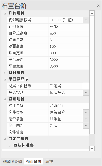 目录 搜索 展开 首页乘车路线版权与商标说明免责声明1 概述1.1 XDB概述1.2 XDB生成流程概述1.3 支持软件说明1.3.1 整体解决方案1.3.2 建筑专业1.3.3 结构专业1.3.4 机电(给排水、暖通、电气)2 审查说明2.1 审查方式2.2 审查范围2.3 审查模型拆分说明2.4 审查逻辑2.5 审查构件3 PKPM-BIM体系建模要求3.1 BIM建模要求3.1.1 建筑专业3.1.1.1标高与楼层3.1.1.2墙3.1.1.3门3.1.1.4窗3.1.1.5板3.1.1.6楼梯3.1.1.7台阶3.1.1.8坡道3.1.1.9屋顶3.1.1.10幕墙3.1.1.11洞口3.1.1.12房间3.1.1.13区域3.1.1.14栏杆3.1.1.15其他3.1.2 结构专业3.1.2.1 梁、柱、墙识图3.1.2.2 梁识图注意事项3.1.2.3 柱识图注意事项3.1.2.4 墙识图注意事项3.1.2.5 梁、柱、墙校审3.1.3 给排水专业3.1.3.1 水管3.1.3.2 管道附件3.1.3.3 水阀3.1.3.4 管件3.1.3.5 地漏3.1.3.6 卫浴设备3.1.3.7 水箱3.1.3.8 水泵3.1.3.9 水泵接合器3.1.3.10 消火栓/消火栓箱3.1.3.11 消防喷头3.1.3.12 灭火器3.1.3.13 补偿器3.1.3.14 集水井、集水坑3.1.4 暖通专业3.1.4.1 风管3.1.4.2 柔性短管/软连接3.1.4.3 暖通水管3.1.4.4 风阀3.1.4.5 风口3.1.4.6 风机3.1.4.7 组合空调机组3.1.4.8 冷水机组3.1.4.9 热量表、燃气表3.1.4.10 锅炉/燃气壁挂炉3.1.4.11 散热器3.1.4.12 防烟分区3.1.5 电气专业3.1.5.1 桥架3.1.5.2 灯具3.1.5.3 插座3.1.5.4 消防设备/火警设备3.1.5.5 广播3.1.5.6 电话3.1.5.7 配电箱/配电柜/消防控制箱/消防控制柜3.1.5.8 发电机组3.1.5.9 变压器3.2 BIM模型自检及属性添加3.2.1 建筑专业3.2.1 结构专业3.2.3 机电专业3.3 XDB数据导出3.3.1 建筑专业3.3.2 结构专业3.3.3 机电(水、暖、电)专业 暂无相关搜索结果! 3.1.1.7台阶 3.1.1.7台阶 序号 BIM审查所需构件属性 参数类型 属性添加建模方式 备注 1 构件名称 自动读取和生成 入口平台用板或台阶建模,命名为“入口平台”; 构件为:台阶 2 高度/踏步高度/踏步数/平台宽度 自动读取 读取几何属性中相关参数或根据参数自动计算。 3 是否内外 自动读取 通用属性中,下拉选择是否为室外台阶。 台阶建模属性示意