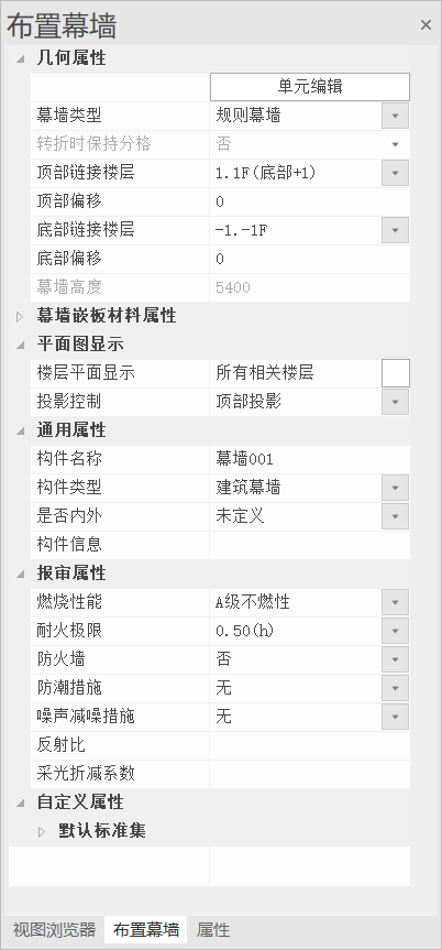 目录 搜索 展开 首页乘车路线版权与商标说明免责声明1 概述1.1 XDB概述1.2 XDB生成流程概述1.3 支持软件说明1.3.1 整体解决方案1.3.2 建筑专业1.3.3 结构专业1.3.4 机电(给排水、暖通、电气)2 审查说明2.1 审查方式2.2 审查范围2.3 审查模型拆分说明2.4 审查逻辑2.5 审查构件3 PKPM-BIM体系建模要求3.1 BIM建模要求3.1.1 建筑专业3.1.1.1标高与楼层3.1.1.2墙3.1.1.3门3.1.1.4窗3.1.1.5板3.1.1.6楼梯3.1.1.7台阶3.1.1.8坡道3.1.1.9屋顶3.1.1.10幕墙3.1.1.11洞口3.1.1.12房间3.1.1.13区域3.1.1.14栏杆3.1.1.15其他3.1.2 结构专业3.1.2.1 梁、柱、墙识图3.1.2.2 梁识图注意事项3.1.2.3 柱识图注意事项3.1.2.4 墙识图注意事项3.1.2.5 梁、柱、墙校审3.1.3 给排水专业3.1.3.1 水管3.1.3.2 管道附件3.1.3.3 水阀3.1.3.4 管件3.1.3.5 地漏3.1.3.6 卫浴设备3.1.3.7 水箱3.1.3.8 水泵3.1.3.9 水泵接合器3.1.3.10 消火栓/消火栓箱3.1.3.11 消防喷头3.1.3.12 灭火器3.1.3.13 补偿器3.1.3.14 集水井、集水坑3.1.4 暖通专业3.1.4.1 风管3.1.4.2 柔性短管/软连接3.1.4.3 暖通水管3.1.4.4 风阀3.1.4.5 风口3.1.4.6 风机3.1.4.7 组合空调机组3.1.4.8 冷水机组3.1.4.9 热量表、燃气表3.1.4.10 锅炉/燃气壁挂炉3.1.4.11 散热器3.1.4.12 防烟分区3.1.5 电气专业3.1.5.1 桥架3.1.5.2 灯具3.1.5.3 插座3.1.5.4 消防设备/火警设备3.1.5.5 广播3.1.5.6 电话3.1.5.7 配电箱/配电柜/消防控制箱/消防控制柜3.1.5.8 发电机组3.1.5.9 变压器3.2 BIM模型自检及属性添加3.2.1 建筑专业3.2.1 结构专业3.2.3 机电专业3.3 XDB数据导出3.3.1 建筑专业3.3.2 结构专业3.3.3 机电(水、暖、电)专业 暂无相关搜索结果! 3.1.1.10幕墙 3.1.1.10幕墙 序号 BIM审查所需构件属性 参数类型 属性添加建模方式 备注 1 构件名称 自动读取和生成 建模方式参考【墙】部分 1) 构件为:幕墙;2) 其他建模方式参考【墙】部分 幕墙建模属性示意