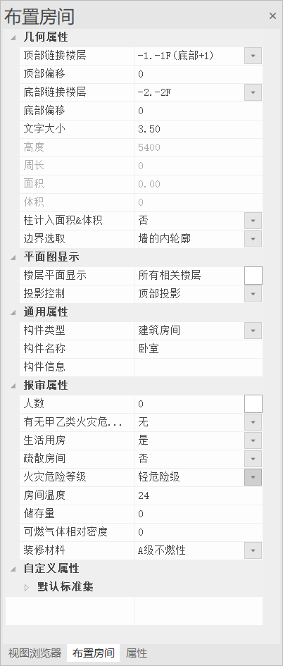 | 1 | 类别名称 | 自动读取和生成 | 1)各功能区域均需用房间标示出来,然后根据房间功能命名,例如:卧室、起居室、厨房、餐厅、卫生间,客房、病房、宿舍、设备间、电梯井等,均用房间建模,名称应包含这些关键字;
