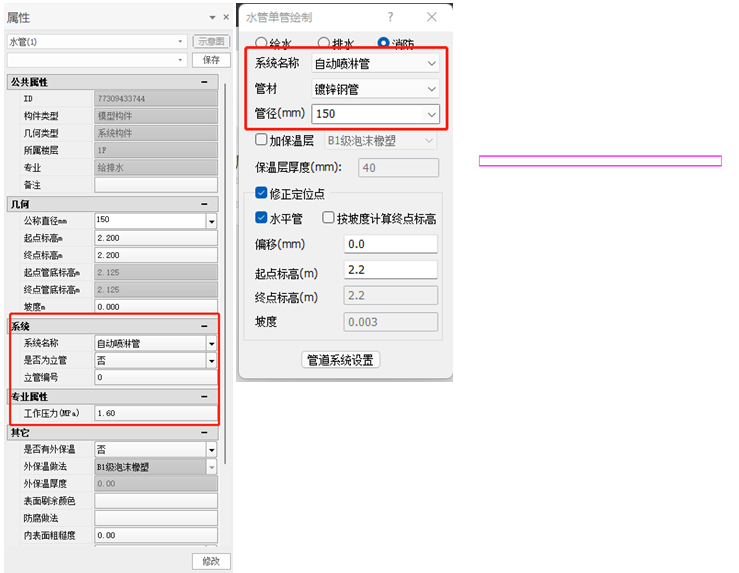 | 3 | 直径、标高 | 自动读取 | 1)可以在绘制管道时或属性栏选择、修改;2)必须保证参数和图纸的一致性; | |