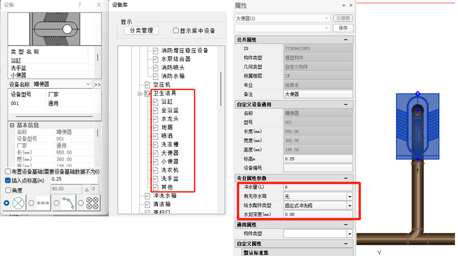 PKPM-BIM体系卫浴设备建模示意