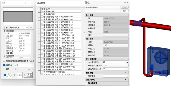 | 1 | 名称 | 自动读取 | 1)名称需要包含构件关键字,如消火栓、消火栓箱、组合式消火栓箱、试验消火栓、试验消火栓箱等;2)必须和相应的消火栓管道进行有效连接; | |